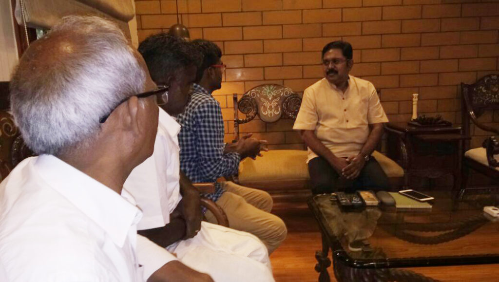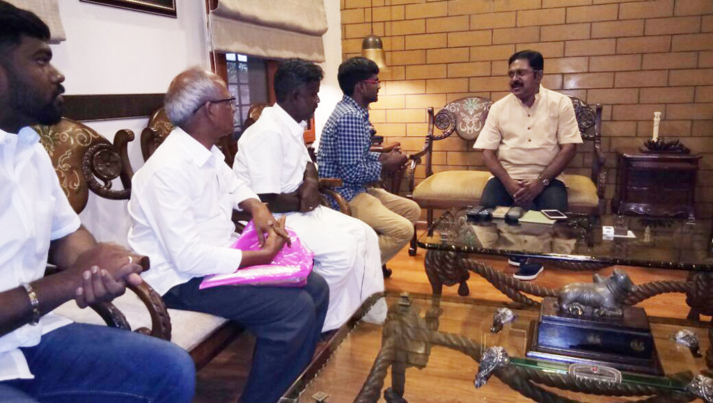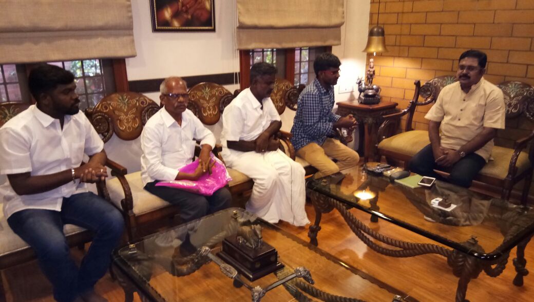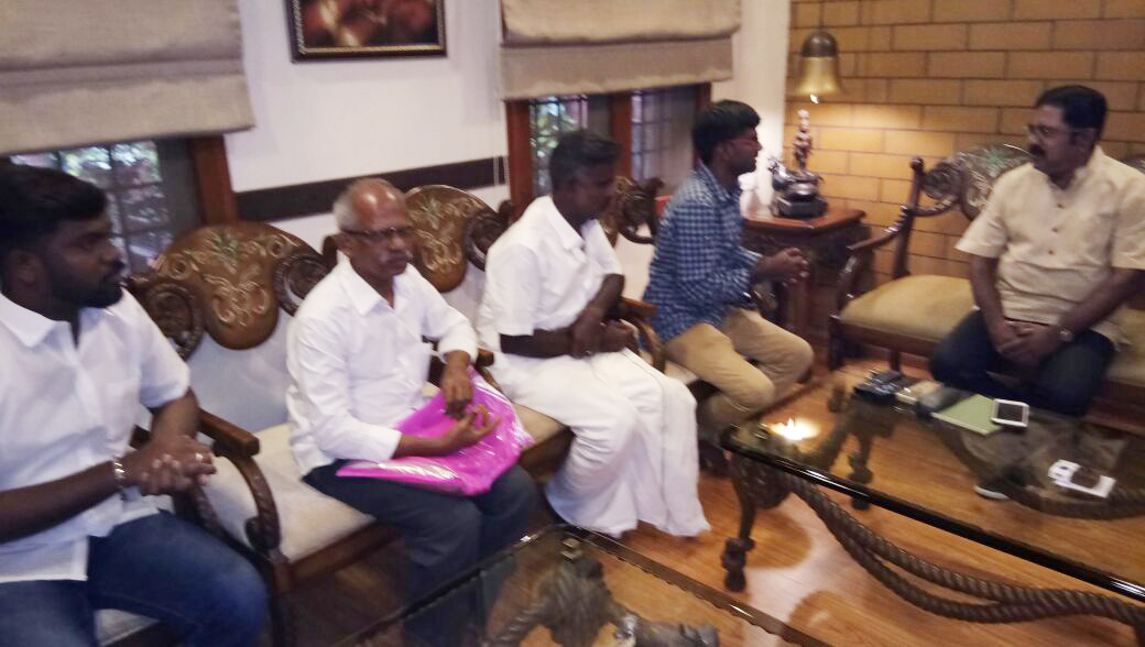 நீட் தேர்வால் தனது மருத்துவ கனவு பெய்த்ததால் தற்கொலை செய்து கொண்ட மாணவி அனிதாவின் அண்ணன் மணிரத்தினம் அப்பா சண்முகம் இன்று சென்னையில் உள்ள வீட்டில் டி.டி.வி தினகரனை சந்தித்தனர்.