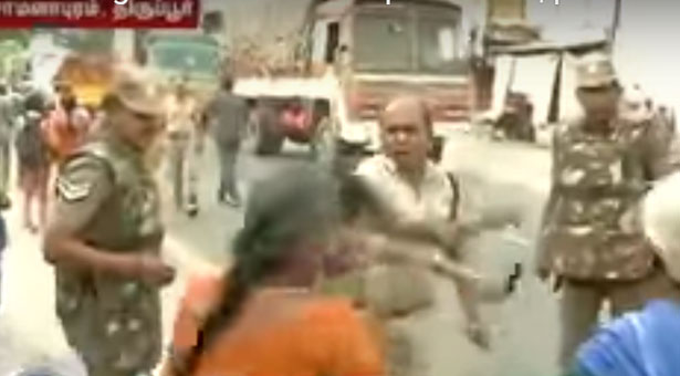போலீசார் போராட்டத்தில் ஈடுபட்ட பெண்களை ஓட ஓட அடித்து விரட்டுகின்றனர். சில பெண்கள் நாங்கள் அமைதியான முறையில்தான் போராட்டம் நடத்துகிறோம், கடையை அகற்ற வேண்டும் என்பதுதான் எங்களது கோரிக்கை எங்களை ஏன் இப்படி அடிக்கிறீர்கள் என கேள்வி எழுப்பினர். இருப்பினும் போலீசார் போராட்டக்காரர்களை அடித்து விரட்டினர். இச்சம்பவத்தினால் அங்கு பெரும் பதற்றம் ஏற்பட்டு உள்ளது.