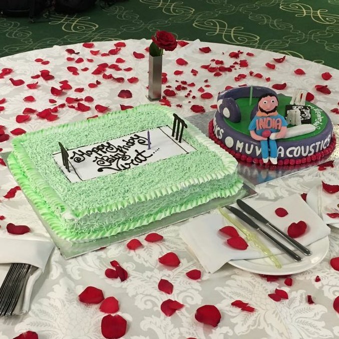 இந்திய கிரிக்கெட் அணியின் கேப்டன் விராட் கோலி இன்று தன்னுடைய 29-வது பிறந்தநாளை கொண்டாடினார். நேற்று நியூசிலாந்துக்கு எதிரான போட்டி முடிந்தபிறகு, ஓய்வு அறையில் இந்திய அணியினருடன் கேக் வெட்டி விராட் கோலி பிறந்தநாளை கொண்டாடினார். கேக் வெட்டிய படங்கள் மற்றும் வீடியோக்கள் தற்போது இணையத்தில் வைரலாகி வருகின்றன.
