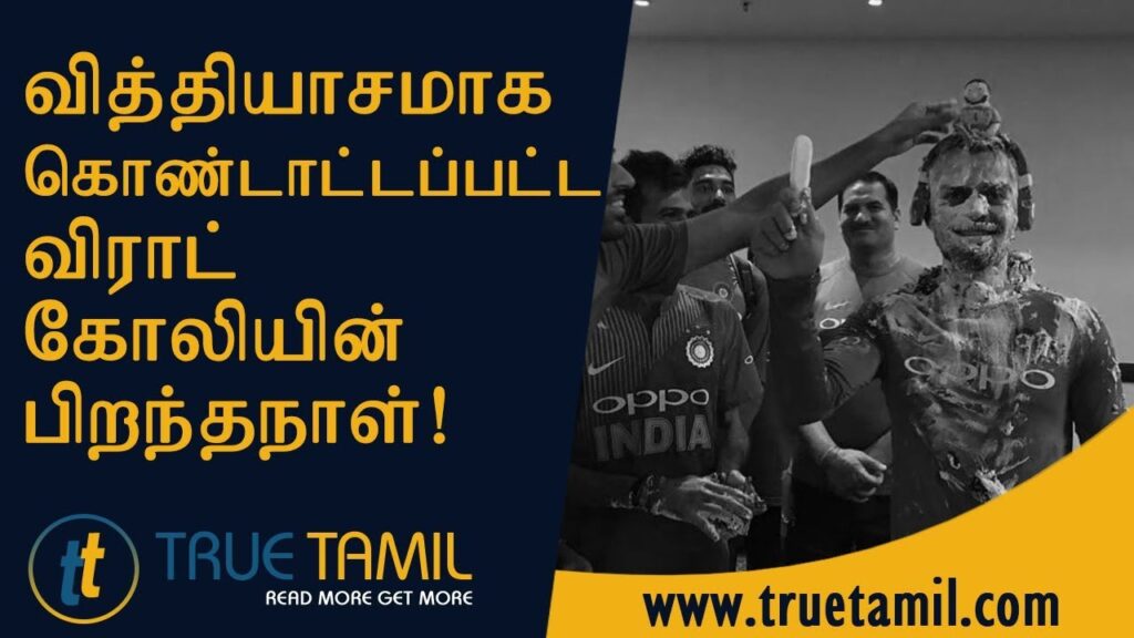 நேற்றைய போட்டியில் இந்தியா தோல்வியடைந்தாலும், விராட் கோலியின் பிறந்தநாளை இந்திய அணியினர் மகிழ்ச்சியுடன் கொண்டாடியுள்ளனர். அந்த வீடியோவில் கேக்கை வெட்டிய விராட் கோலி முதலில் ஷிகர் தவானுக்கு ஒரு வாய் கேக் ஊட்டுகிறார். அதன் பின் தவான் முதலில் கோலியின் முகத்தில் கேக்கை பூசினார். அதன்பிறகு அணியினர் அனைவரும் சேர்ந்து விராட் கோலியின் முகத்தில் கேக் பூசி கொண்டாடினர்.