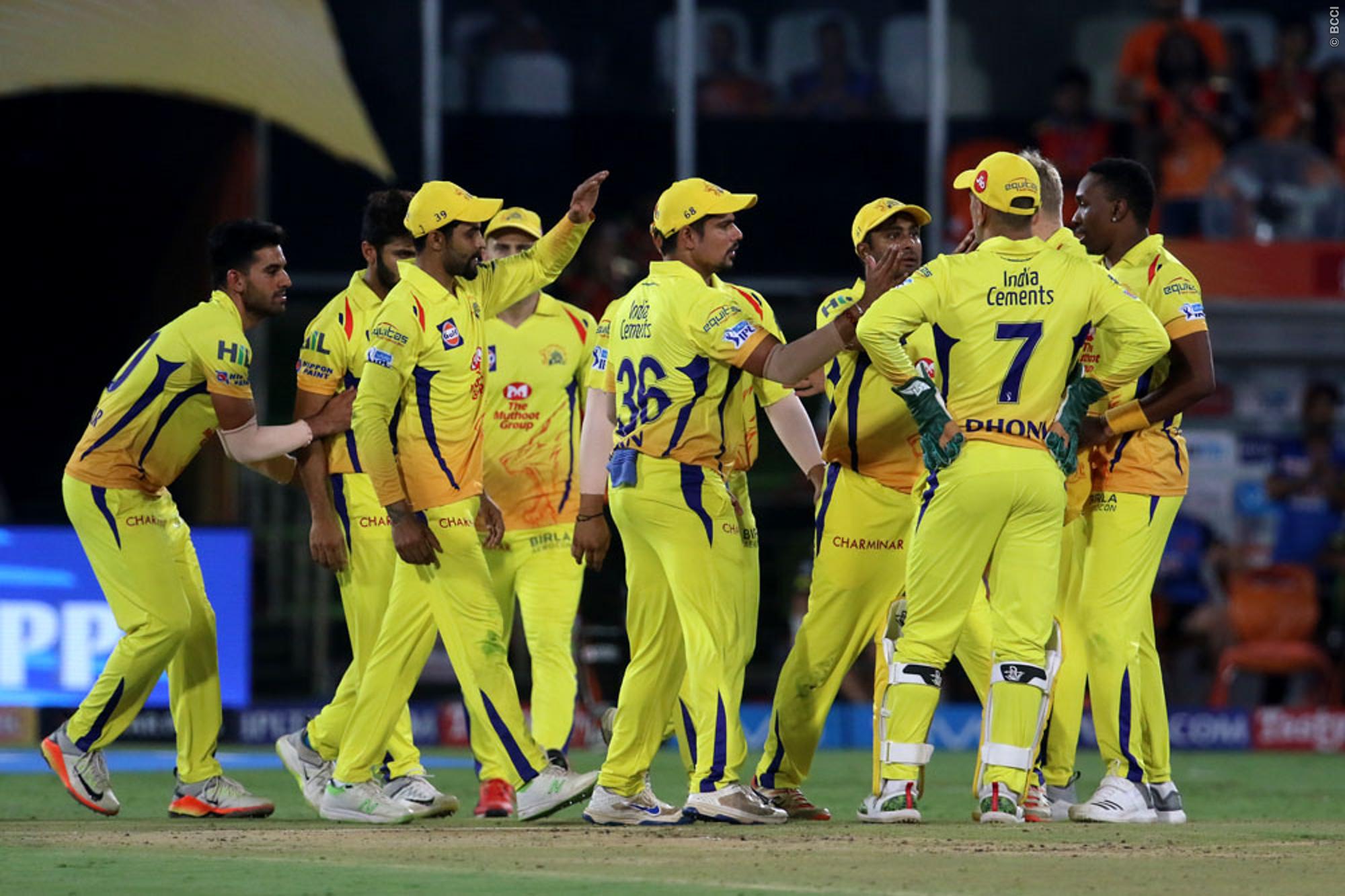 முதலில் காளமிறங்கிய சென்னை சூப்பர் கிங்ஸ் அணி தொடக்கத்திலேயே விக்கட்களை இழந்து தடுமாறியது பின்னர் ஜோடி சேர்ந்த ரெய்னா மற்றும் ராயுடு அதிரடியாக ஆடி ரன்கள் குவித்தனர். சென்னை அணி 20 ஓவர்களின் முடிவில் 3 விக்கட்களை இழந்து 182 ரன்கள் குவித்தது. அந்த அணியில் அதிகபட்சமாக ராயுடு 79 ரன்களும், ரெய்னா 54 ரன்களும் குவித்தனர்.