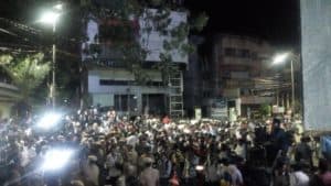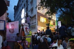 திமுக தலைவர் கருணாநிதியின் உடல்நிலையில் பின்னடைவு என்ற காவேரி மருத்துவமனையின் அறிக்கை வெளியானதையடுத்து மருத்துவமனைக்கு முன்பாக குவிந்த தொண்டர்கள் ‘எழுந்து வா தலைவா’ என்று கோஷங்களை எழுப்பி வருகின்றனர்.