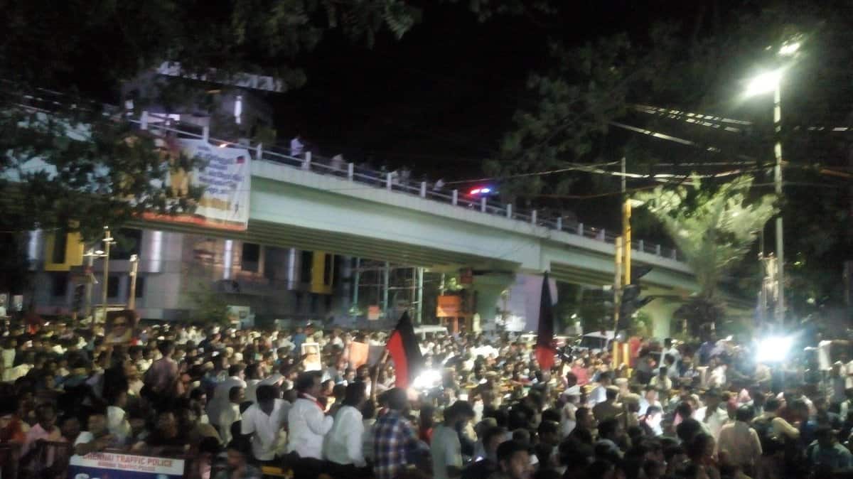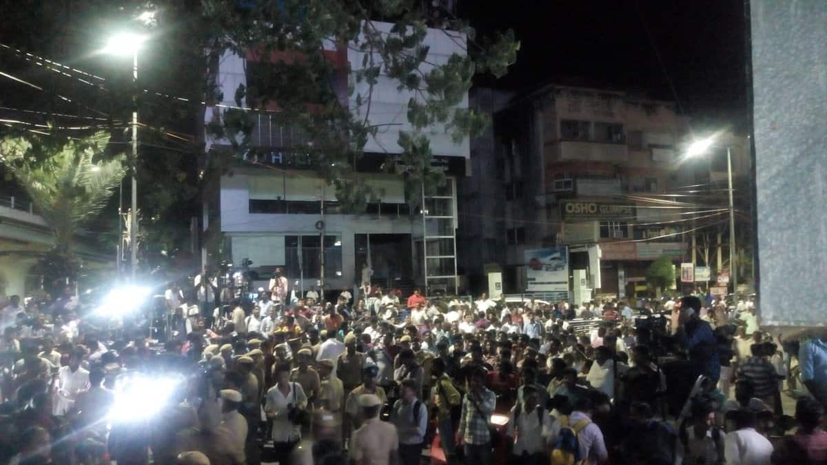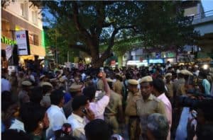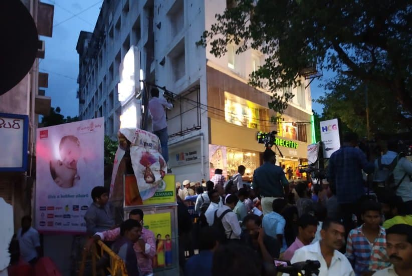 காவேரி மருத்துவமனையின் முன்பு குவிக்கப்படும் காவல்துறையினரின் எண்ணிக்கை அதிகரிக்கப்பட்டு வருகிறது.