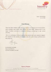 திமுக தலைவர் கருணாநிதியின் உடல்நிலை கவலைக்கிடமாக இருப்பதாக, காவேரி மருத்துவமனை தெரிவித்துள்ளது…!