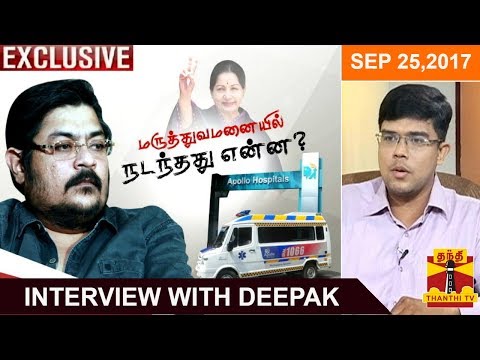 ▶ Exclusive Interview With Jayalalithaa’s Nephew Deepak on 75 Days of Hospitalization | Thanthi TV Post navigation Different views expressed by the Ministers about Jayalalithaa’s death Kamal Haasan Latest Exclusive Interview to Sun News